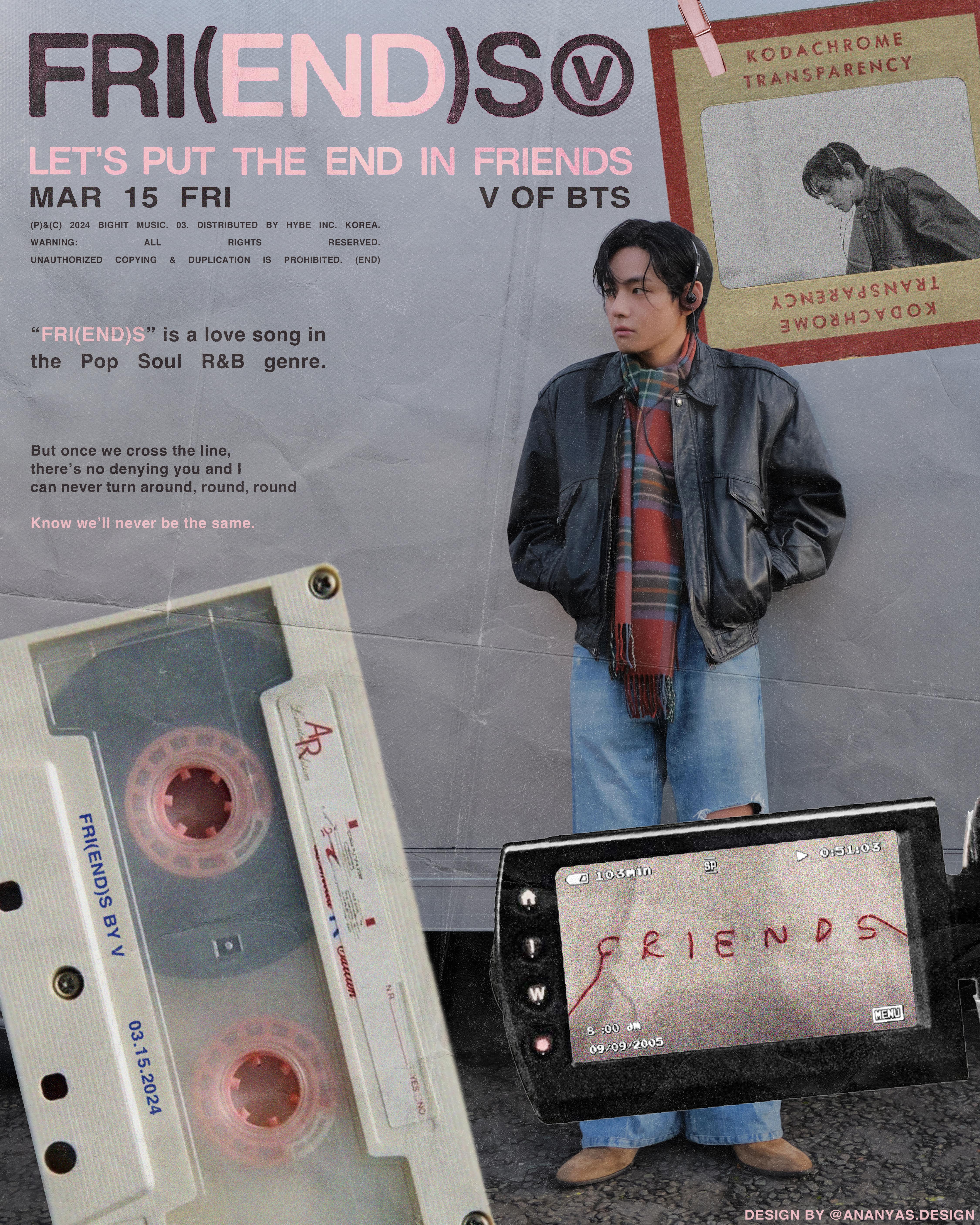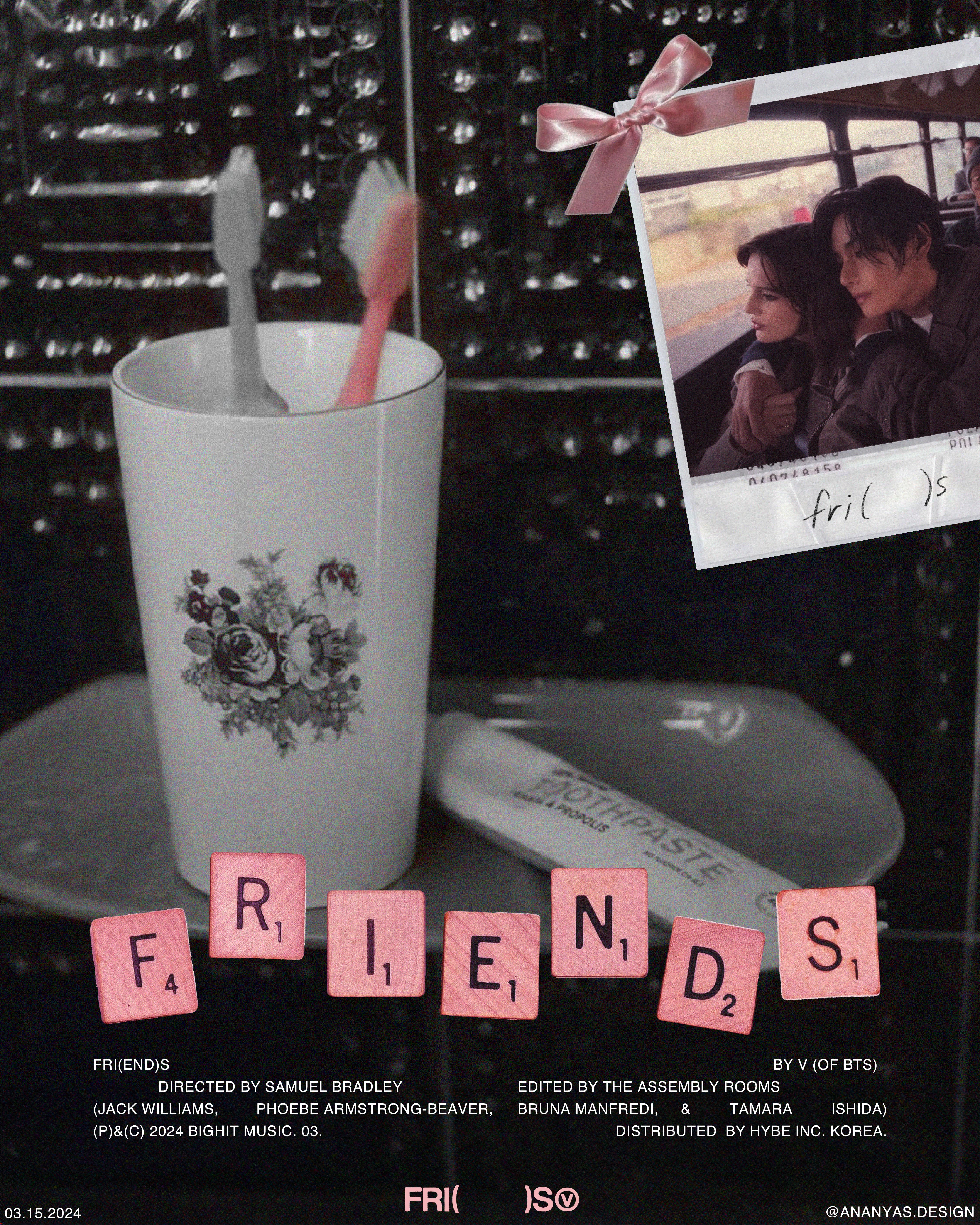 After listening to the Friends by BTS' V, I was inspired to create two posters in a similar style as some of the promotional material for the release as well as the official music video fot the track.