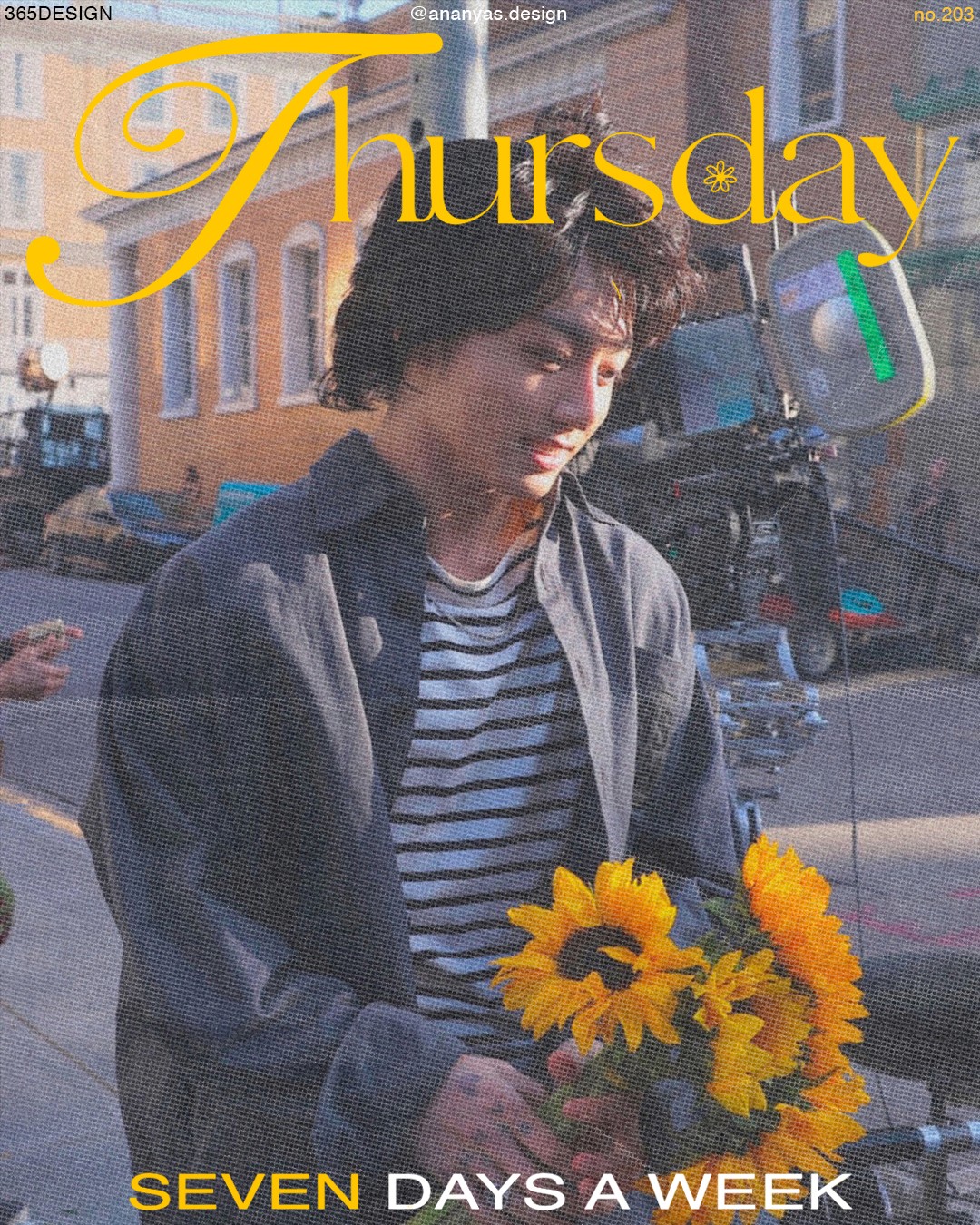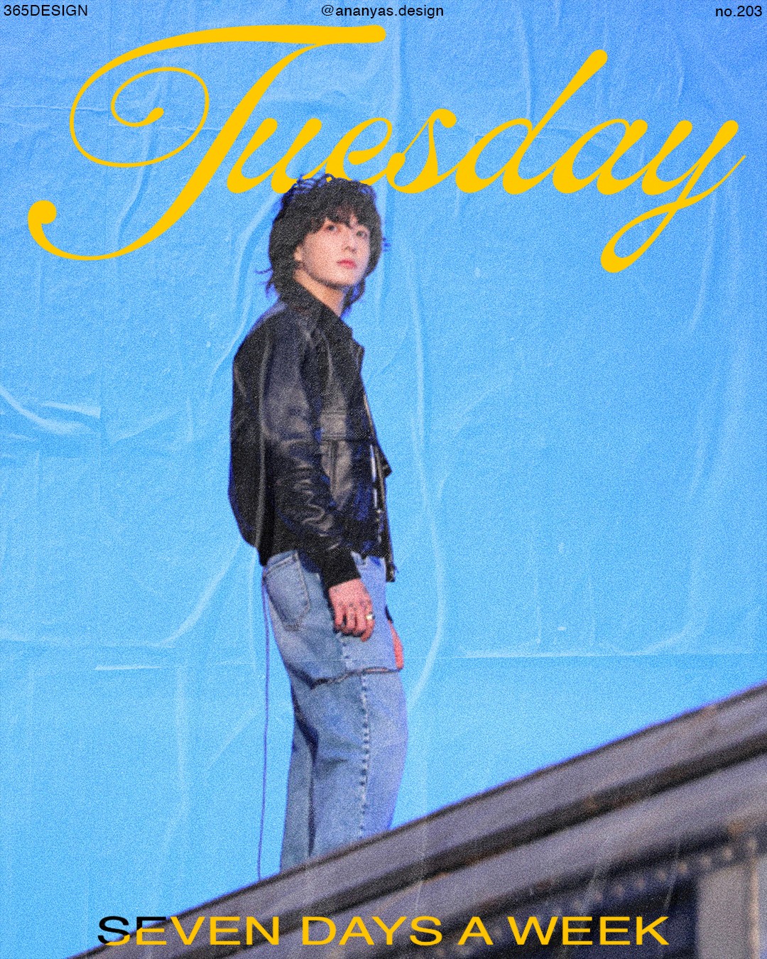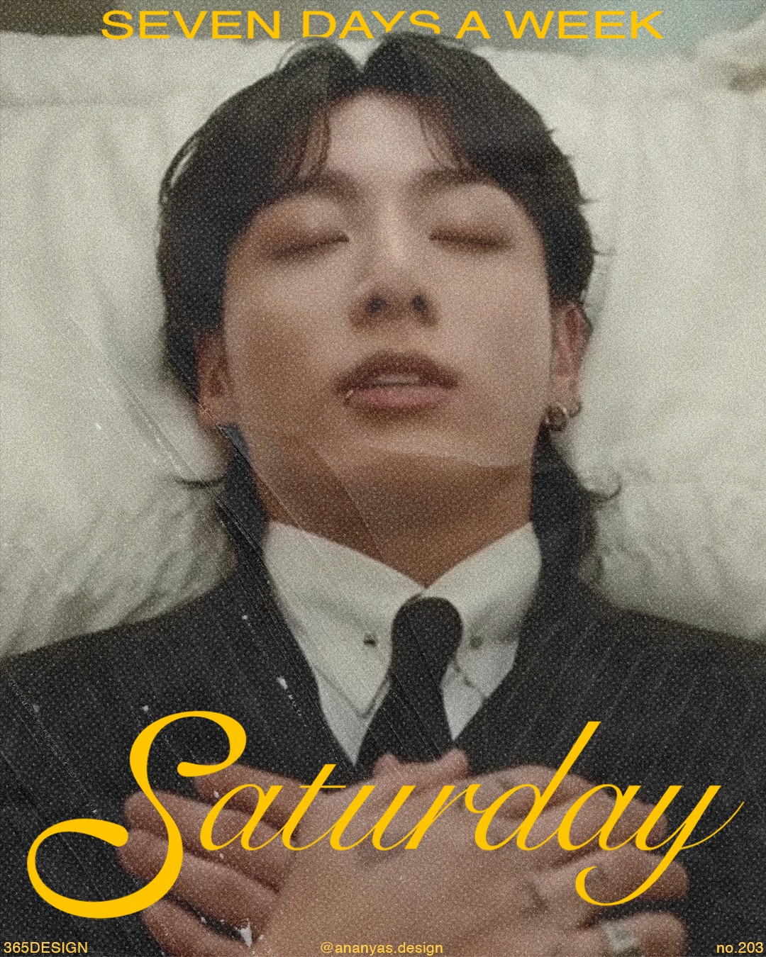 The second series, SEVEN Days a Week, consists of designs inspired by the music video for the song. I really appreciated the style of the music video and felt inclined to make a poster capturing Jung Kook on each day of the week.