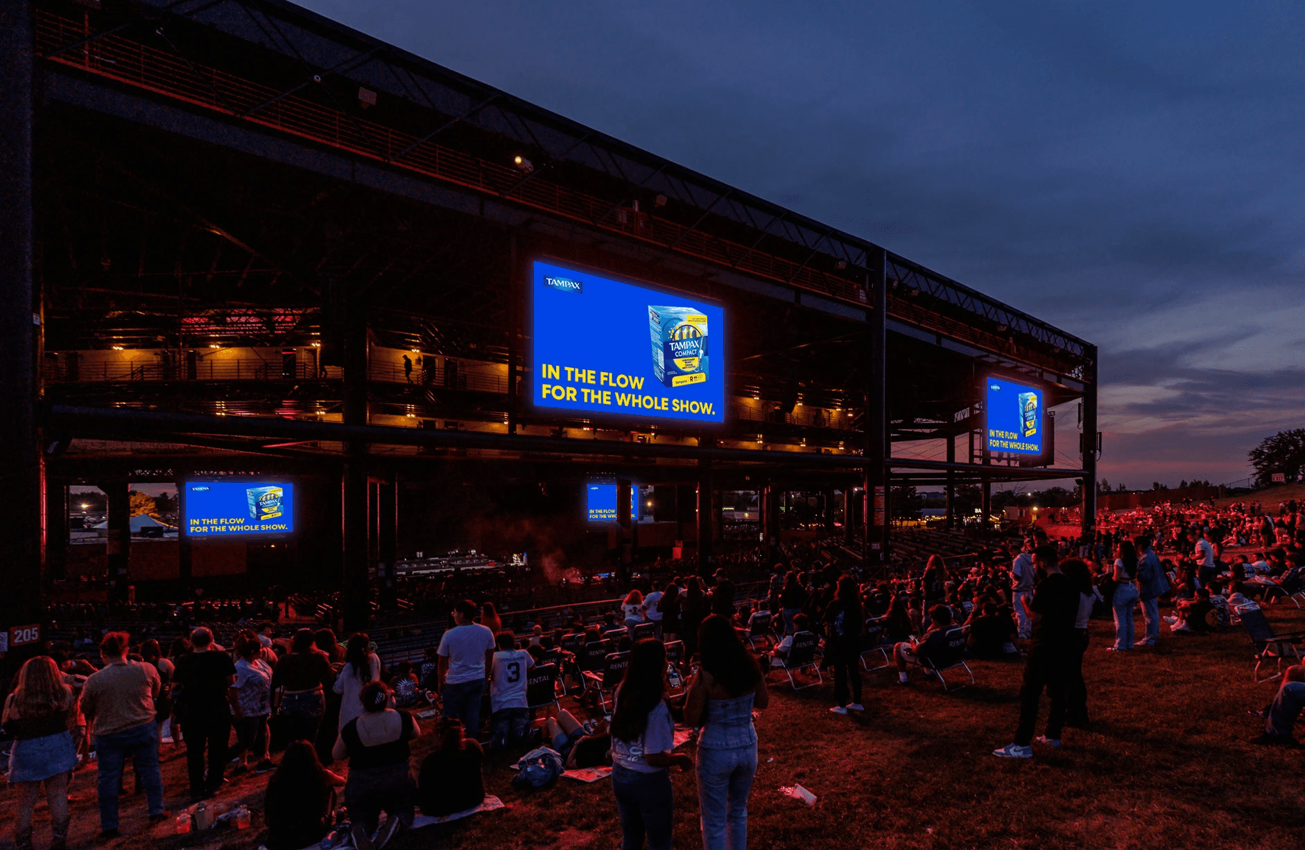 While at Live Nation, I worked with Always and Tampax to promote their feminine care products at concerts and festivals across DOOH screens. In addition to asset creation, I developed mocks to present to the client what the assets would look like. The mocks showcase the advertising material across the DOOH screens (billboard screens, banners, bathroom mirror screens, etc.) at various Live Nation owned-and-operated venues.